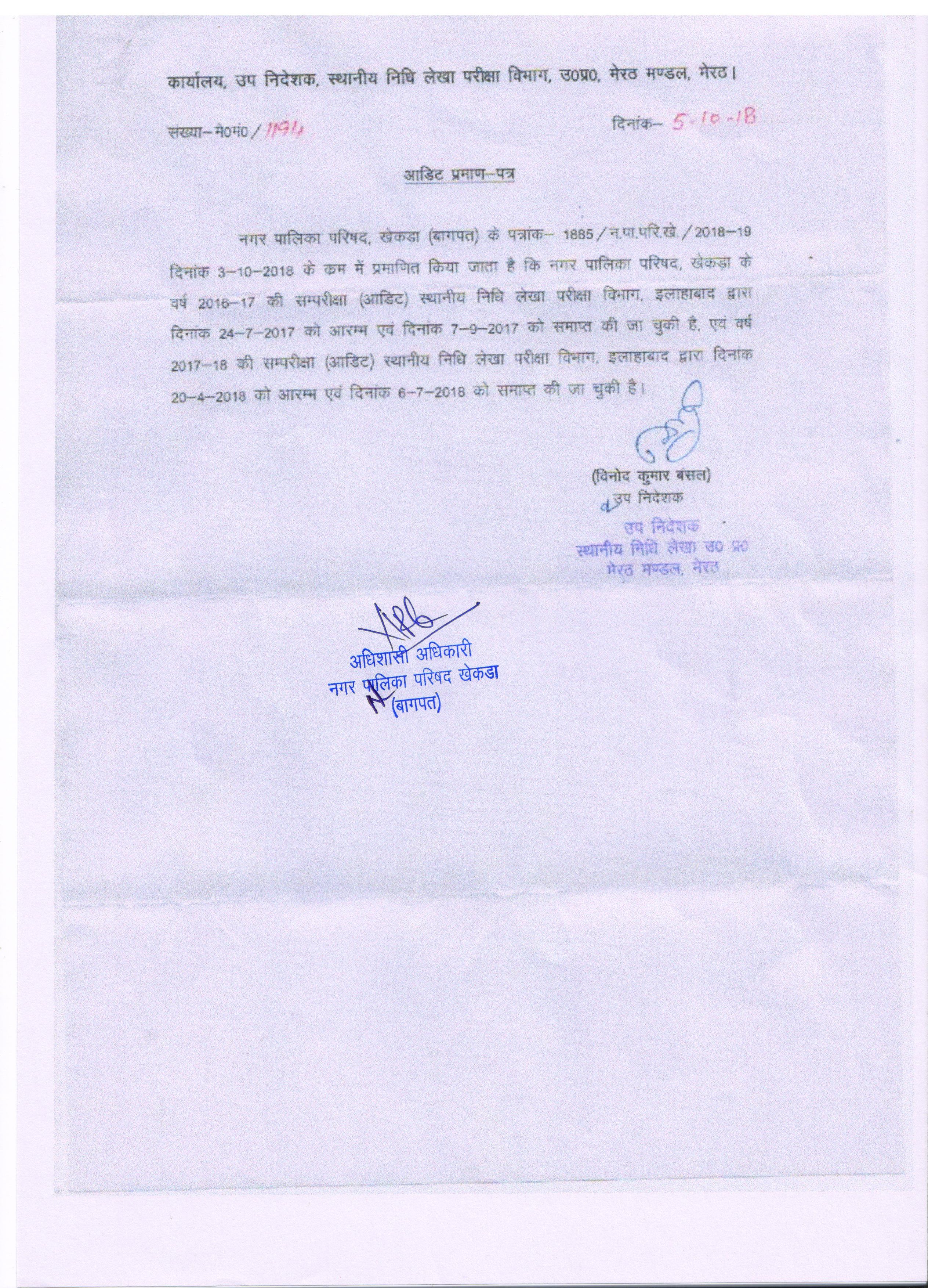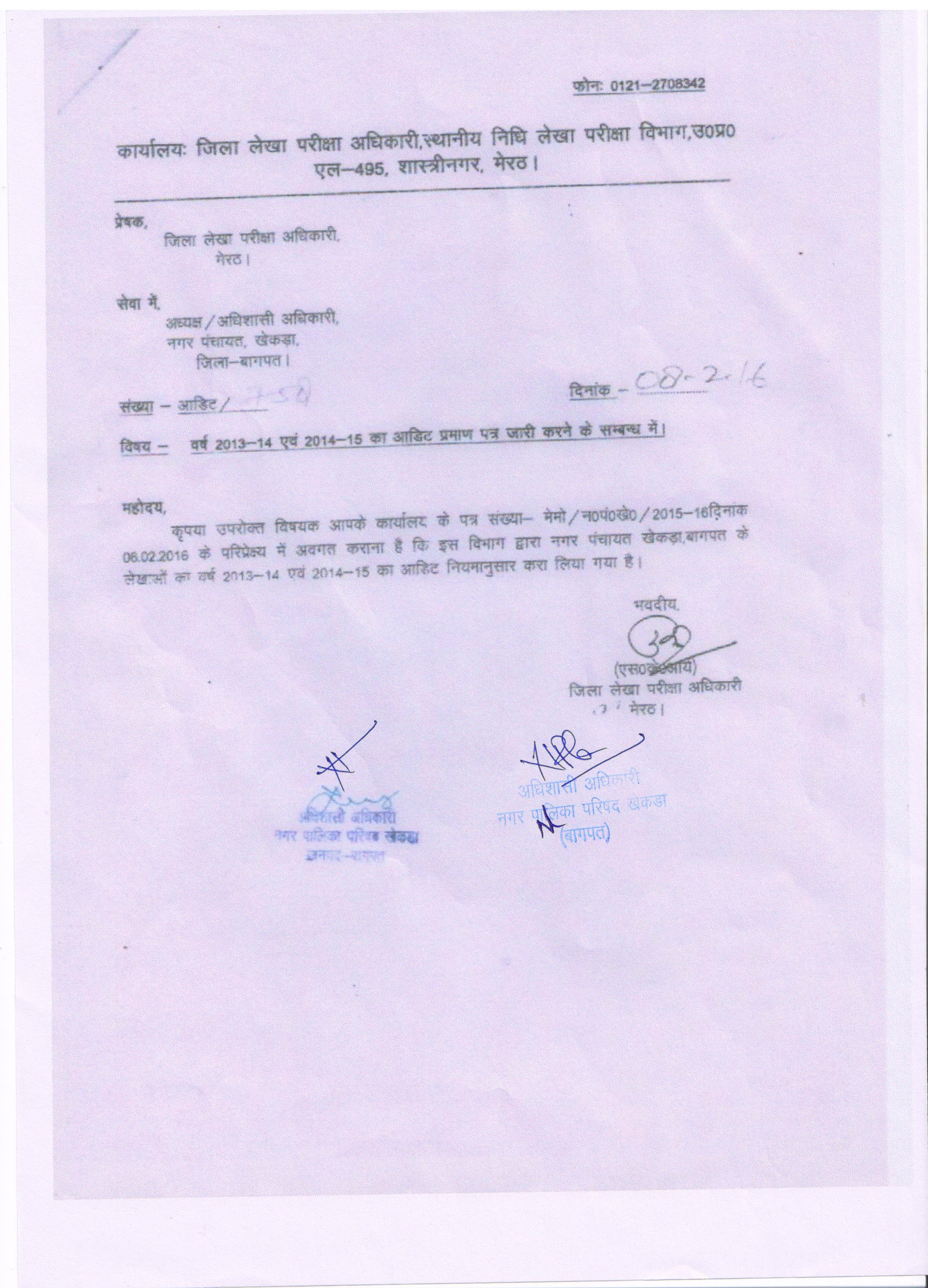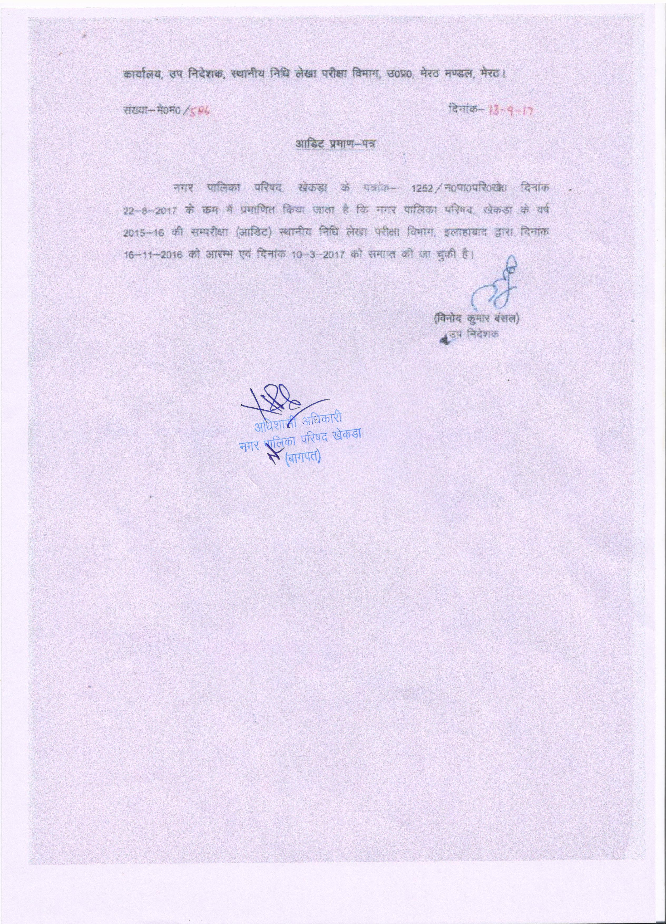 नगर पालिका परिषद्, खेकड़ा जनपद-बागपत, ऑडिट रिपोर्ट